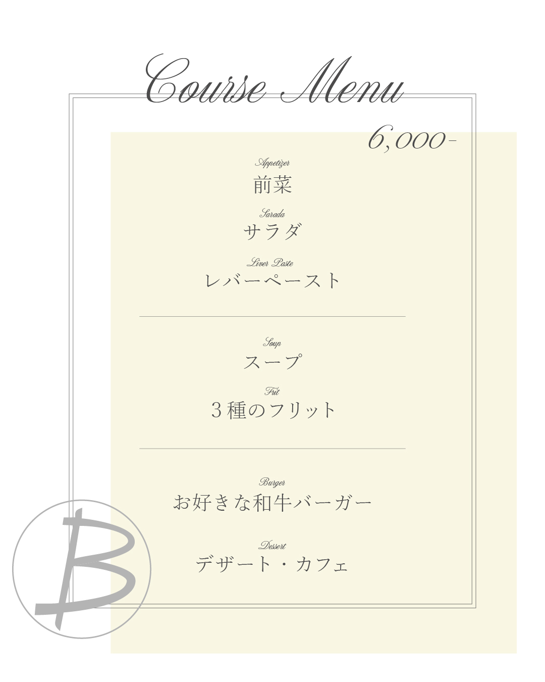 そのため、当店人気のビストロから和牛ハンバーガー、ステーキを楽しめるコースを始めました。